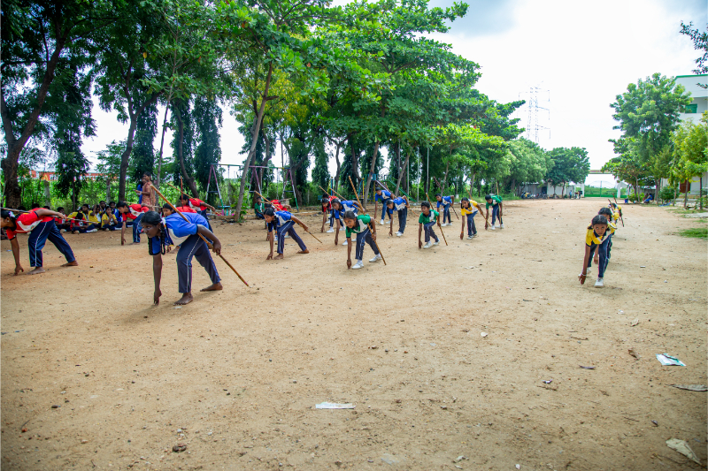 Master the traditional Indian martial art form using bamboo staffs and weapons.